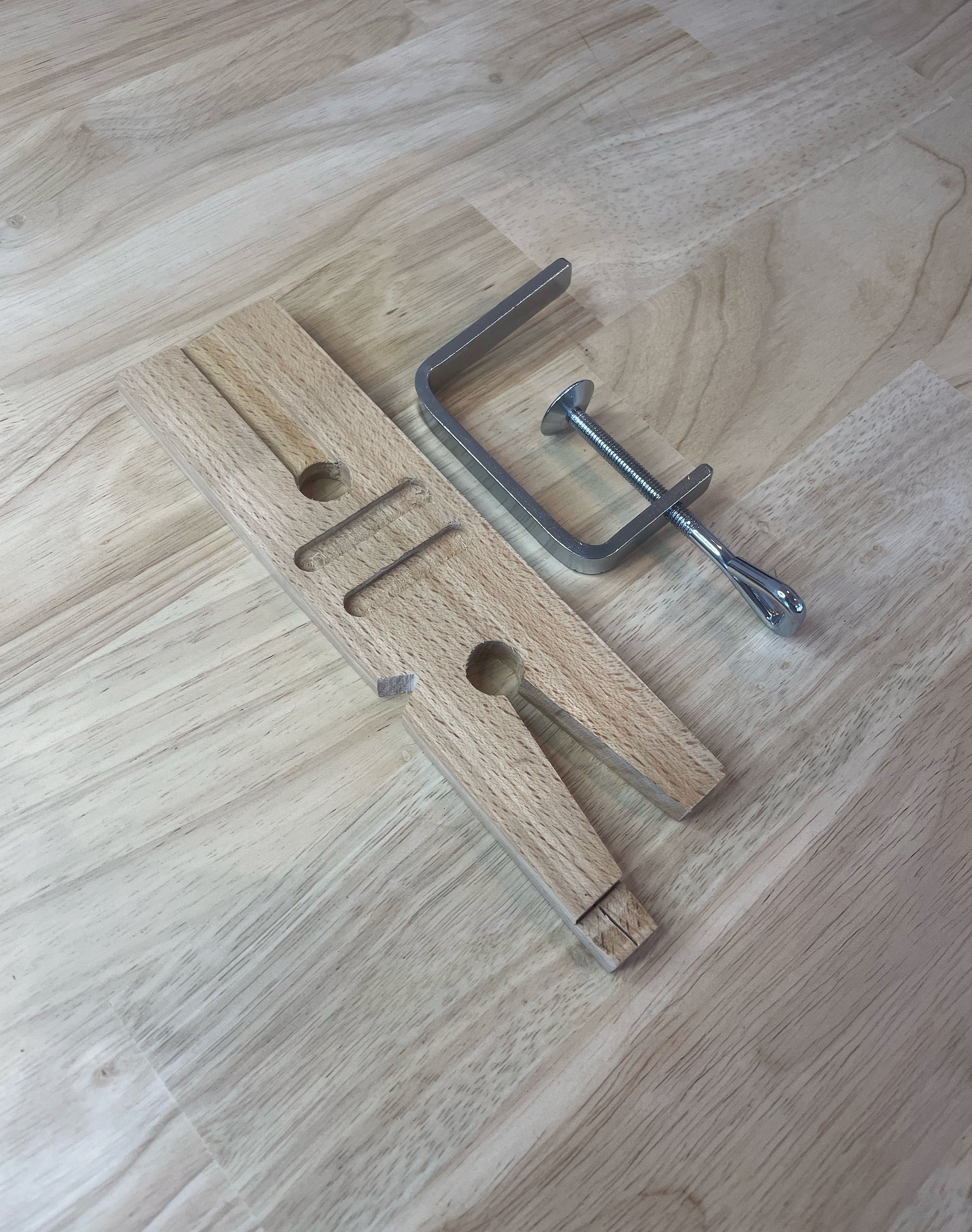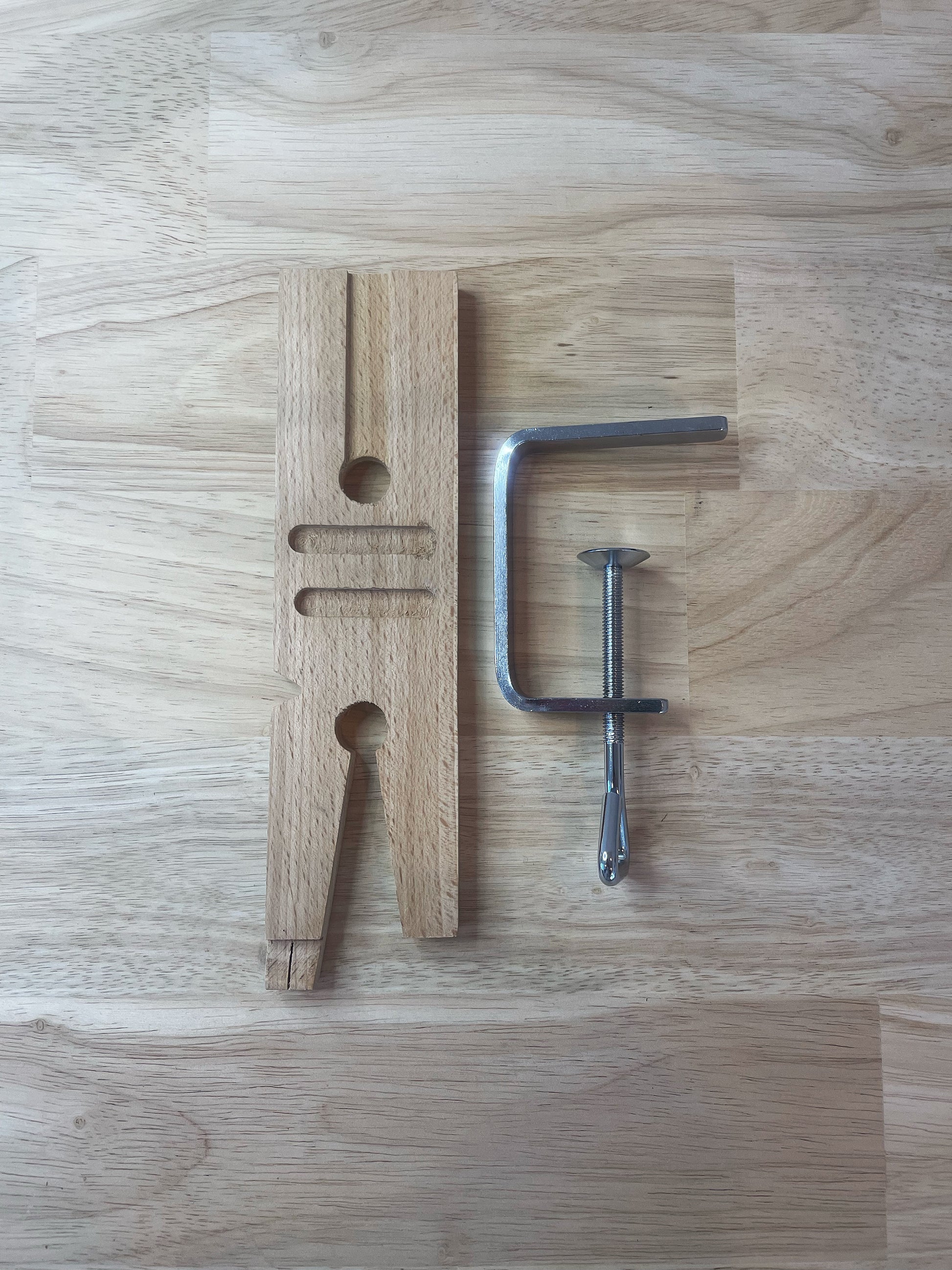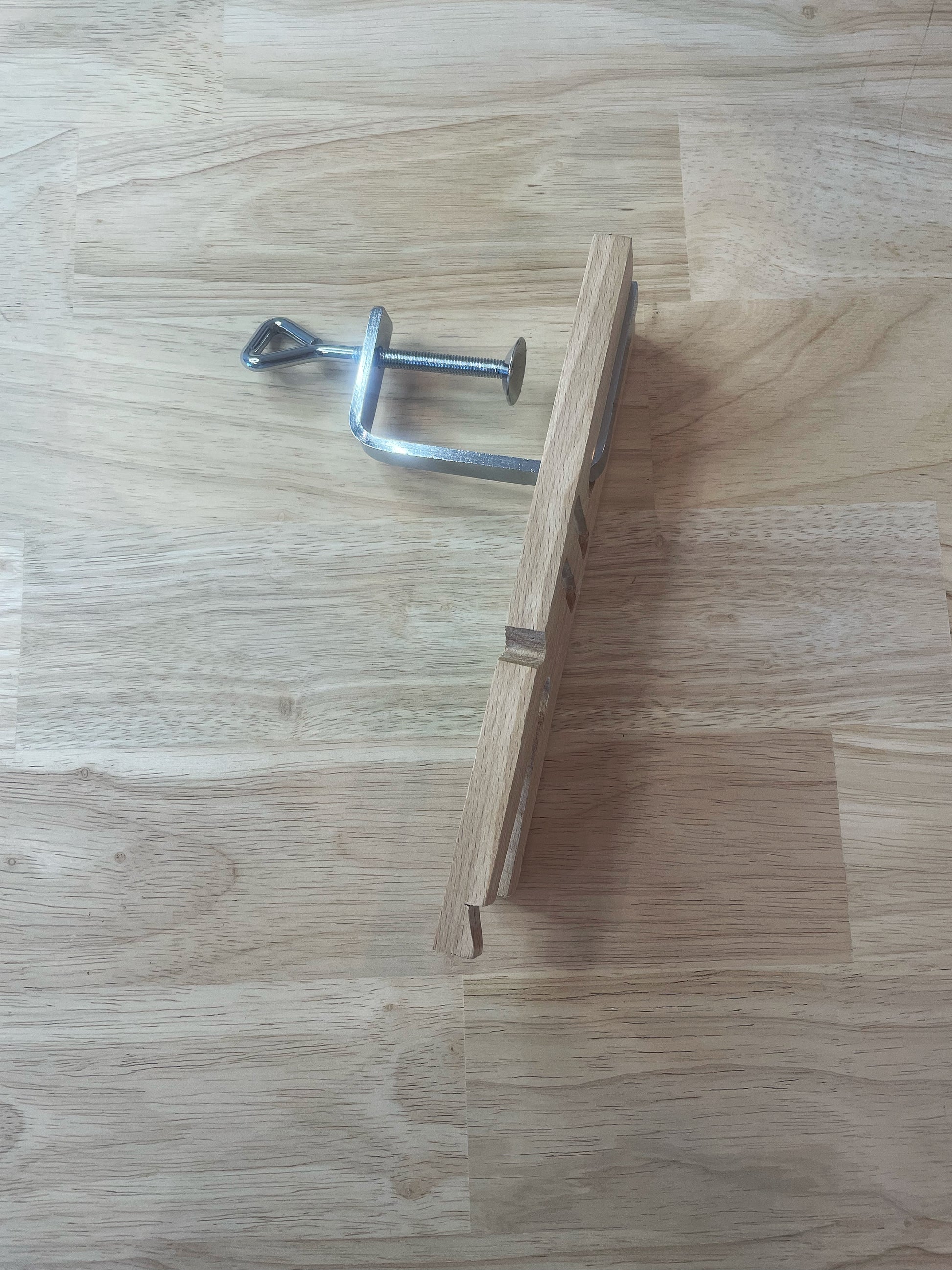 It's made of solid wood with a sturdy clamp to fit to almost any table.