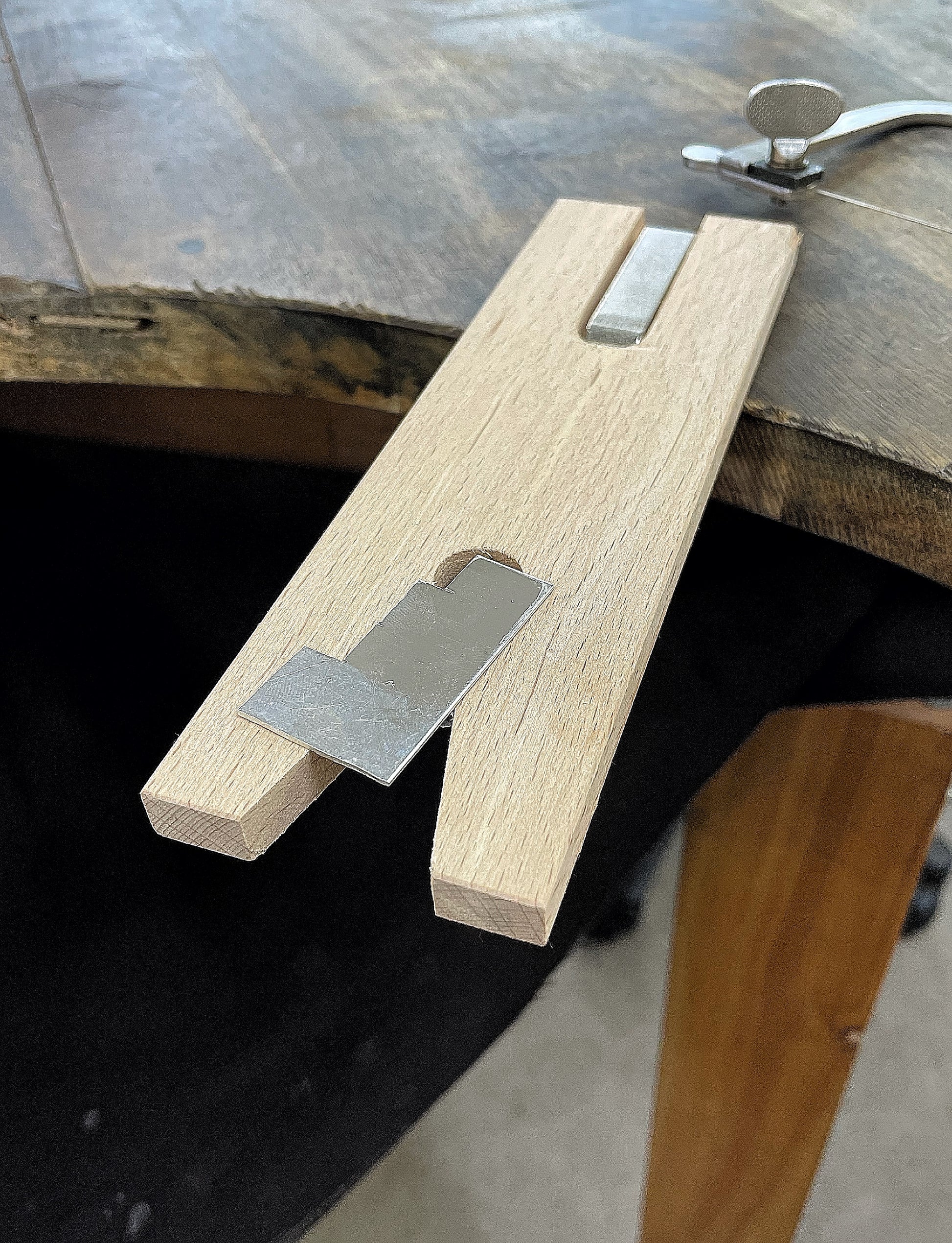 This handy little bench pin can clamp on easily to any table and be removed for the jeweller on the go!