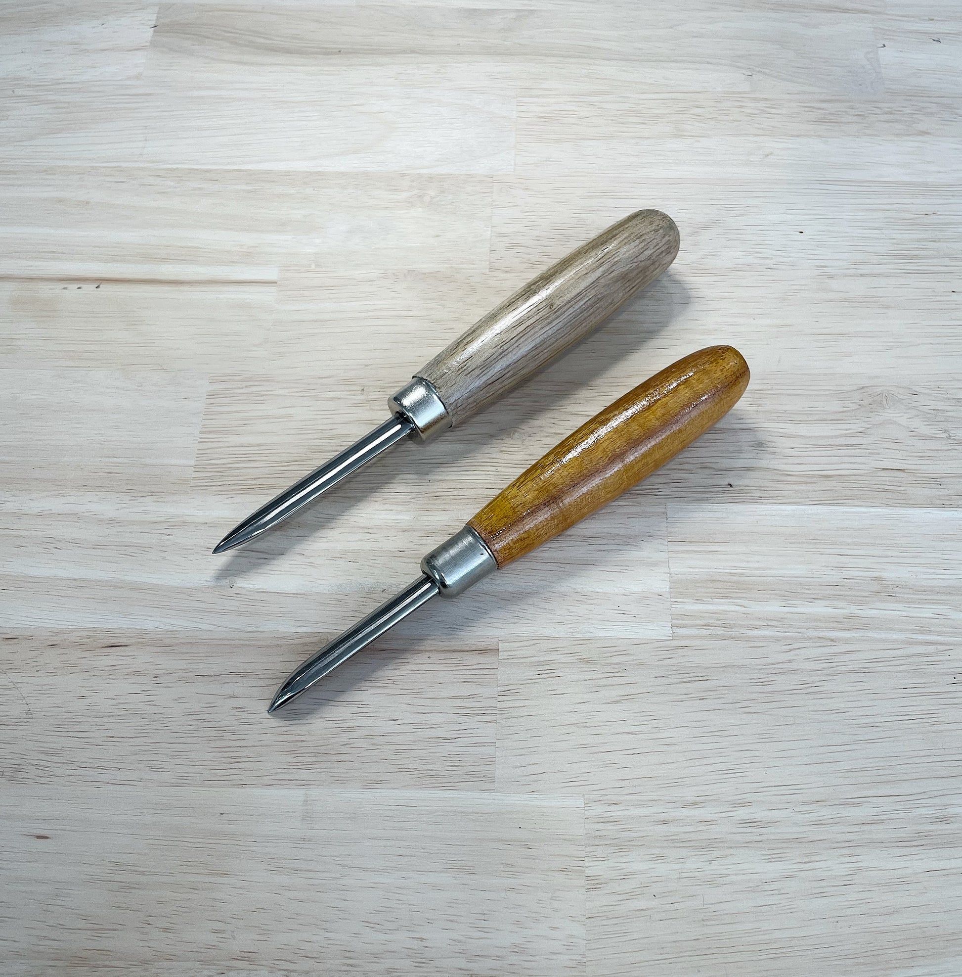 They are crafted from a hardened and highly polished steel shaft and a comfortable wooden handle. Choose from straight or curved.