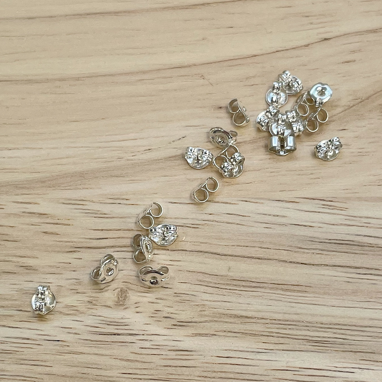 Solid sterling silver butterfly earring closures for back of earrings. These medium weight scrolls fit a 0.8mm earring post and fit our earring posts perfectly.