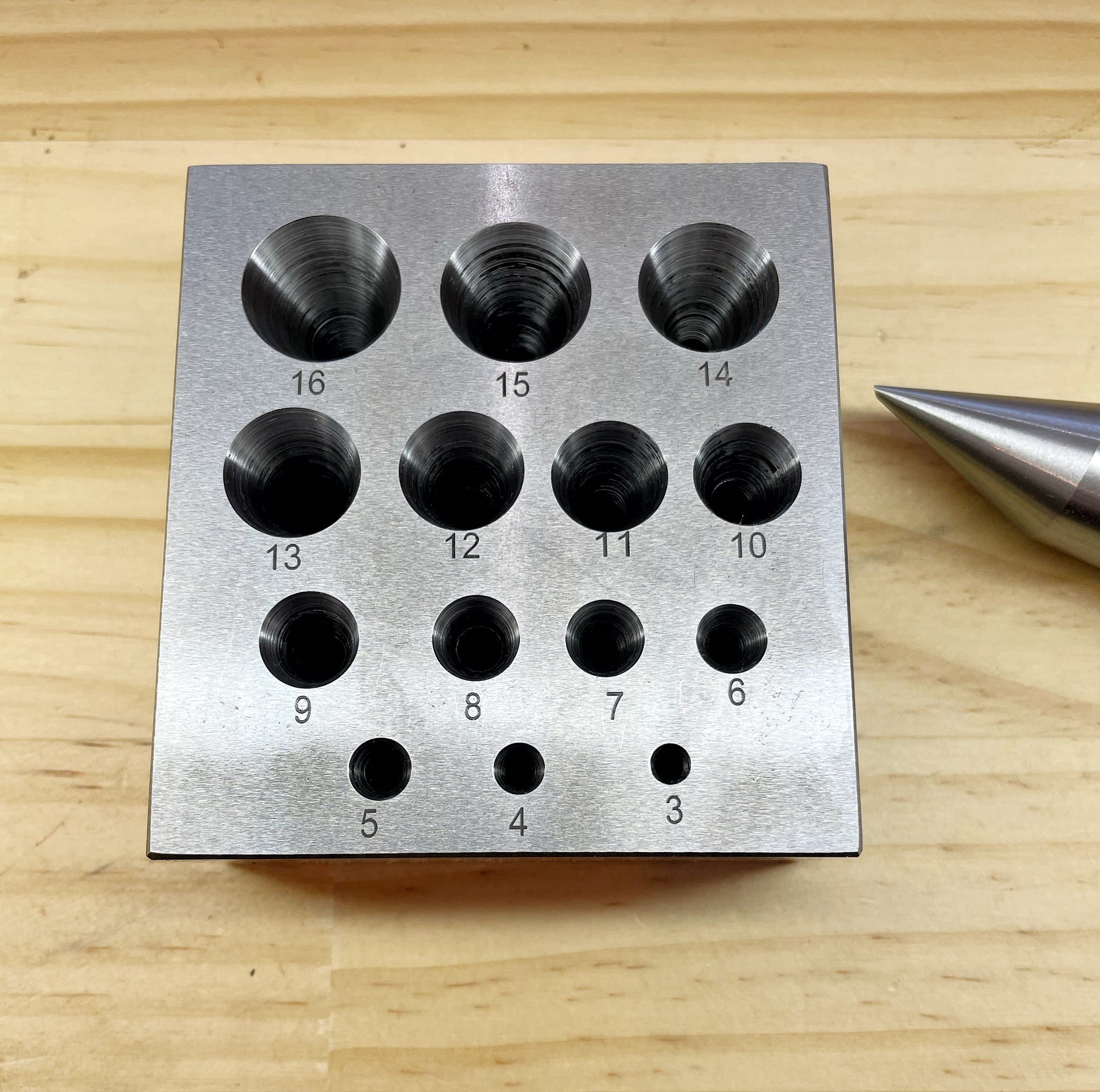 Crafted from hardened steel, it features 14 perfectly graduated holes ranging from 3mm to 16mm, allowing you to form consistent, smooth bezels and collets with ease.