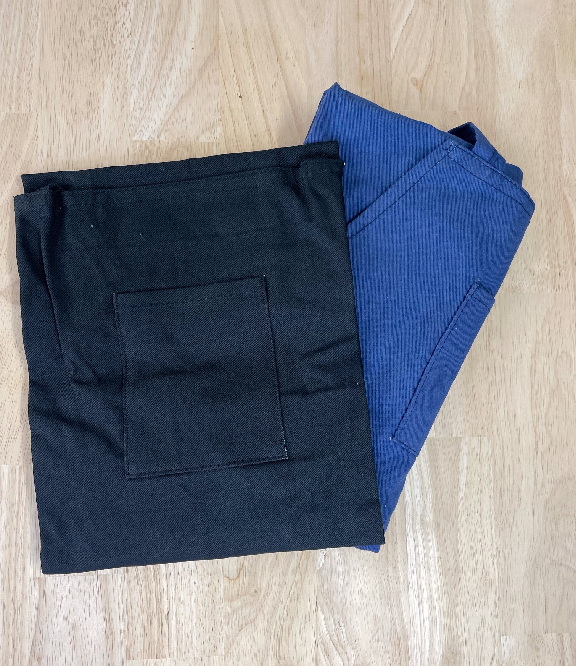 These lovely jeweller's aprons are constructed from thick, pure cotton. They are absorbent (dry stuff on them!), strong (protect your bod!), and handy (two big pockets!). An absolute must for protecting your clothes and storing your stuff. One size fits all.