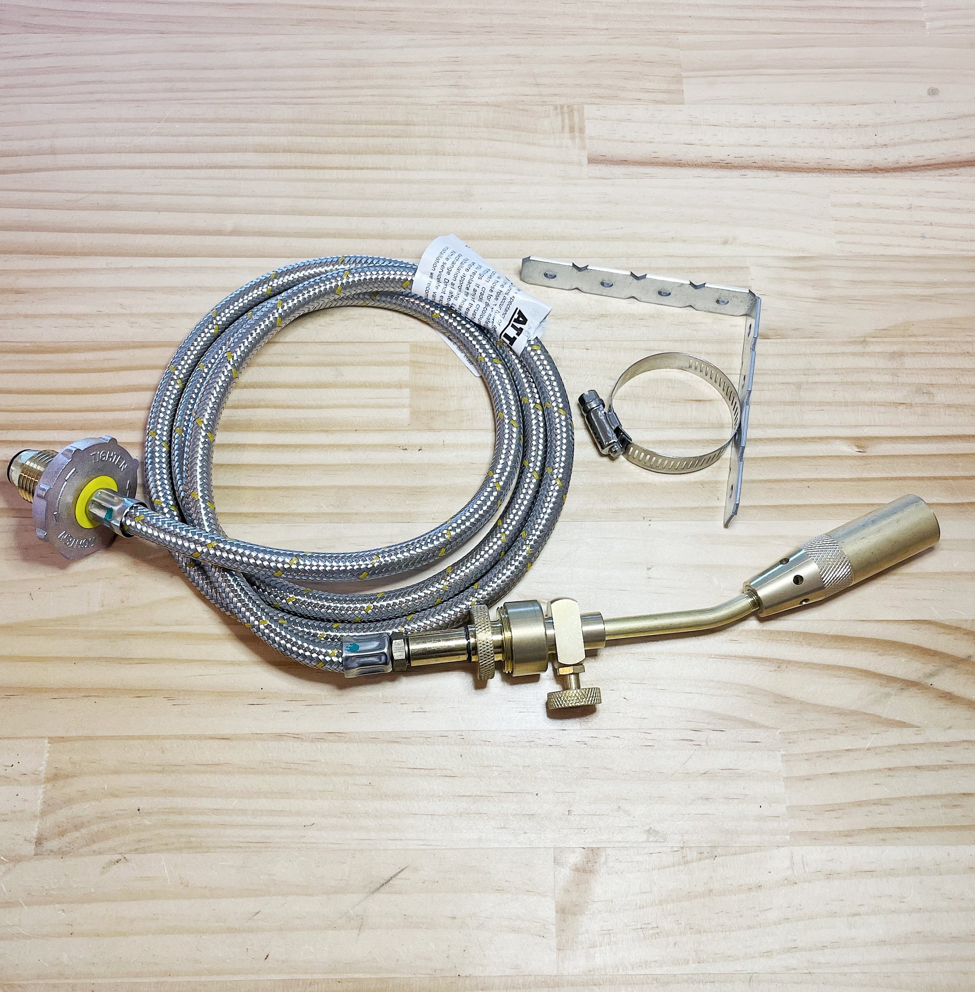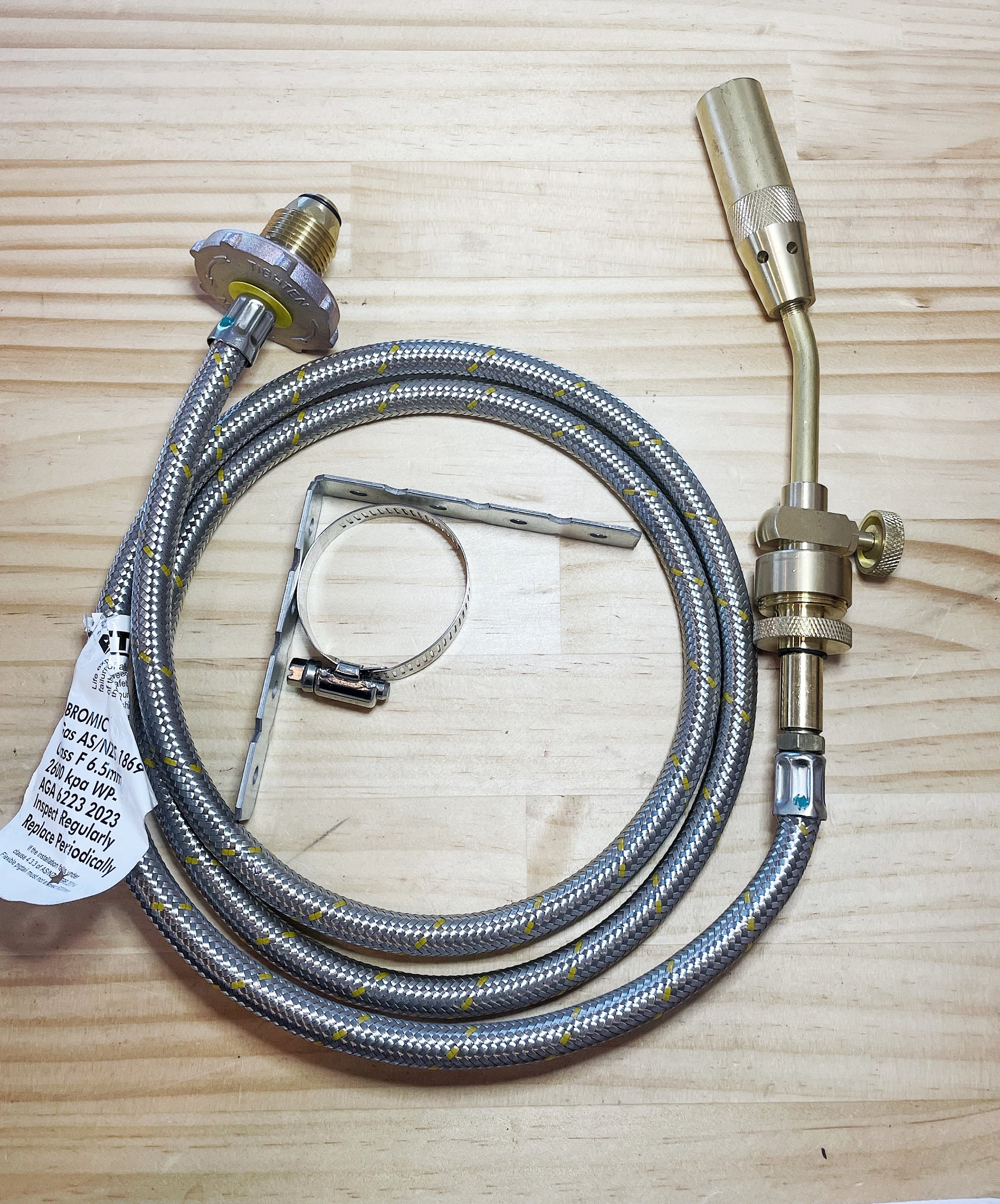 The torch head measures 80 mm long and 20 mm in diameter, creating a balanced flame size that’s ideal for detailed work. Attached is a generous 150 cm hose, giving you plenty of freedom and flexibility at the bench while keeping your workspace safe and uncluttered. It also comes with a support attachment so you can clamp it to your bench. It connects directly into a standard LPG bottle fitting.