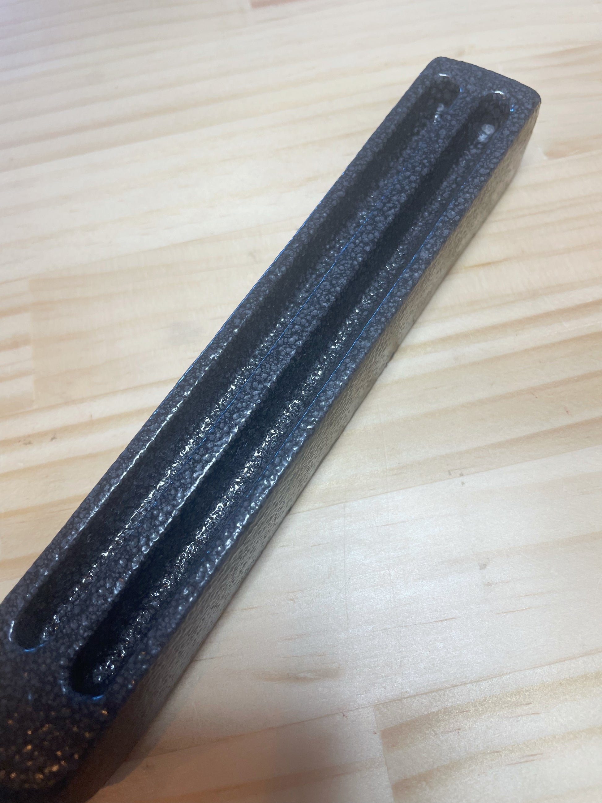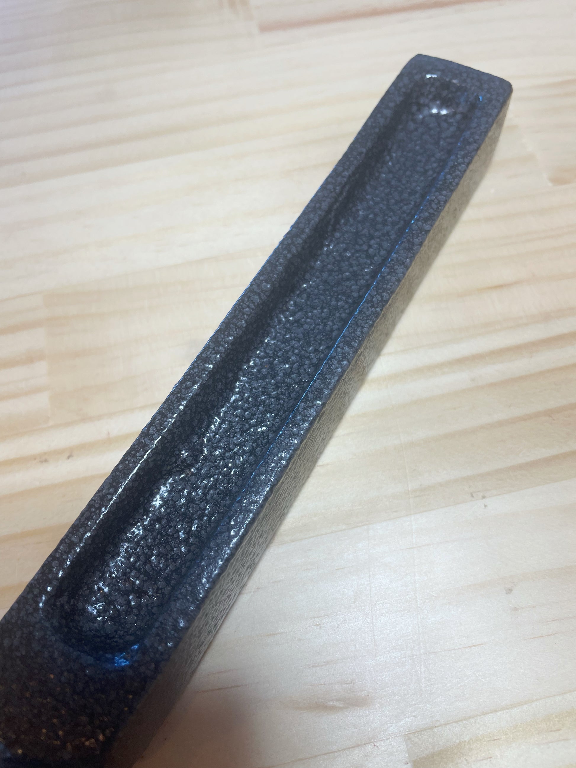 The whole ingot measures 270mm long x 25mm high x 32mm wide. The billet moulds measure 155mm long, and 8mm wide. The flat side measures 17mm wide x 155mm long x 8mm thick.