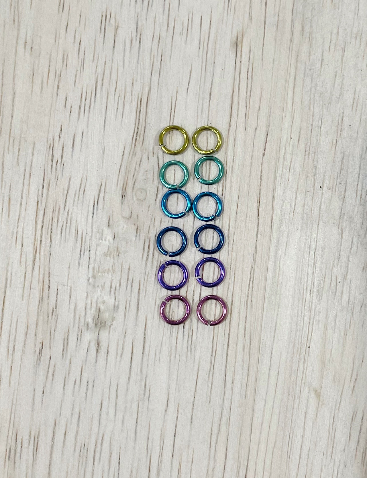 Choose from gold, green, teal, dark blue, purple or pink. We also stock niobium earring hooks in the same colours.