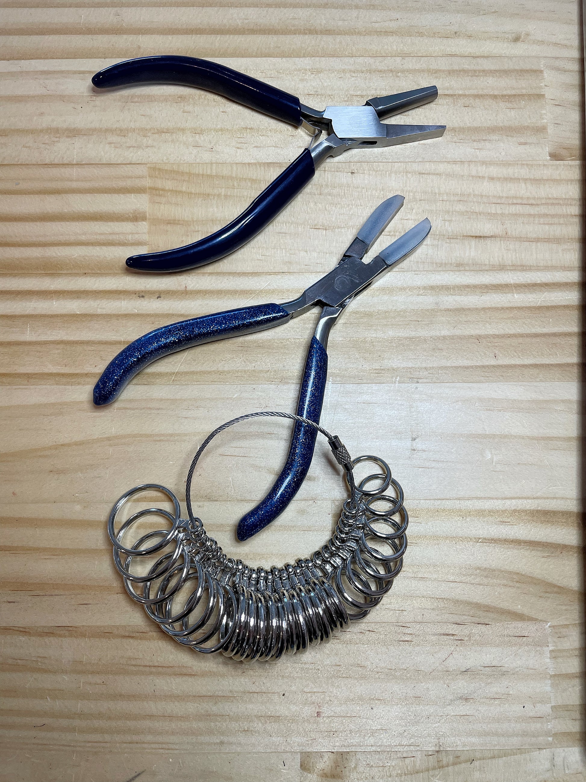2 kinds of mid range pliers - Half Round (aka Ring Bending pliers) for bending up ring strips and Nylon Jawed Pliers.