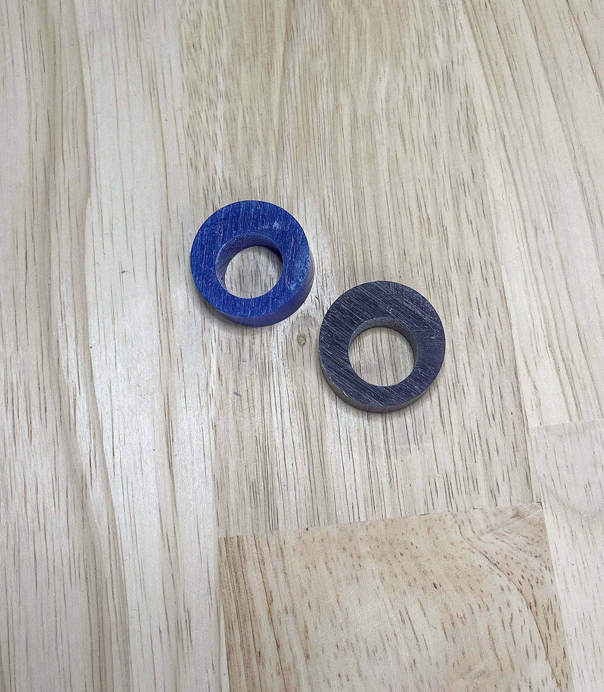 These slices of blue or purple carving wax are perfect for rings or other casting projects!