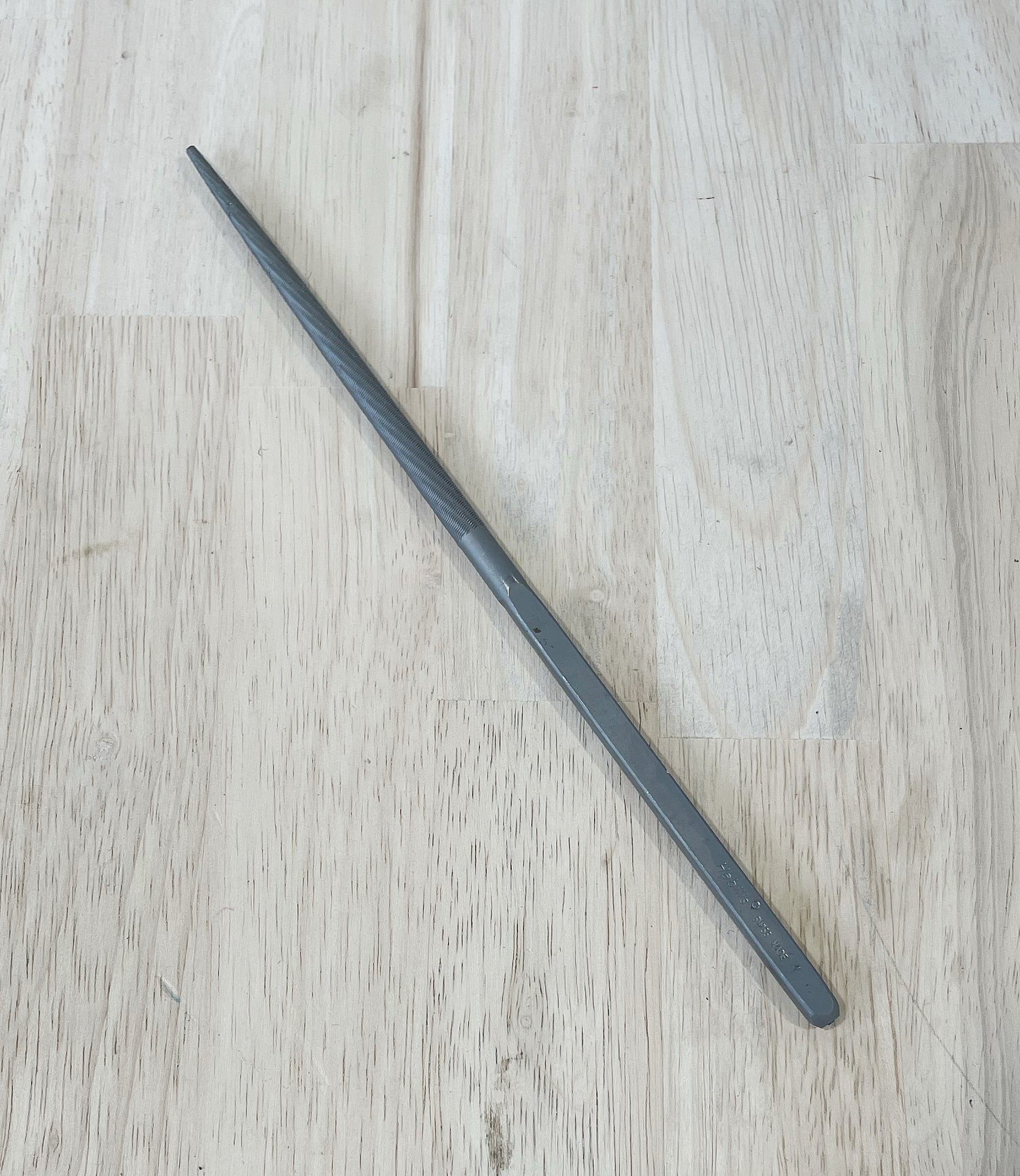 This round file is made by Vallorbe in Switzerland, the gold standard for jewellery files. It is large enough to file the insides of rings, while it's tip is a fairly narrow 2mm.