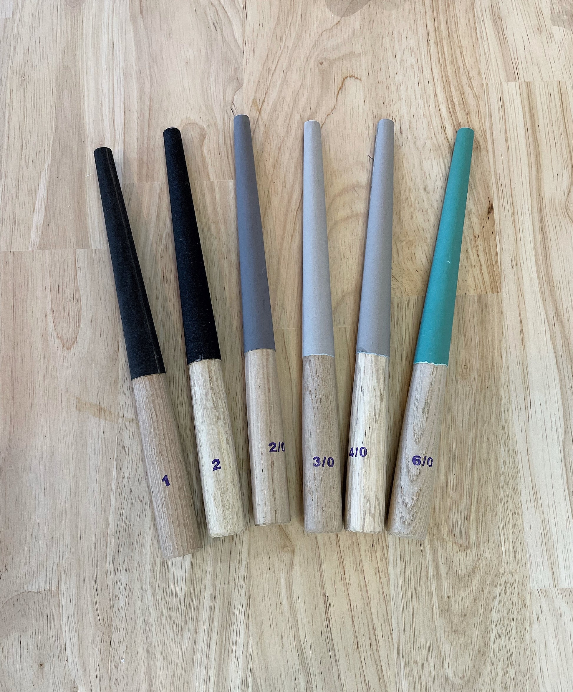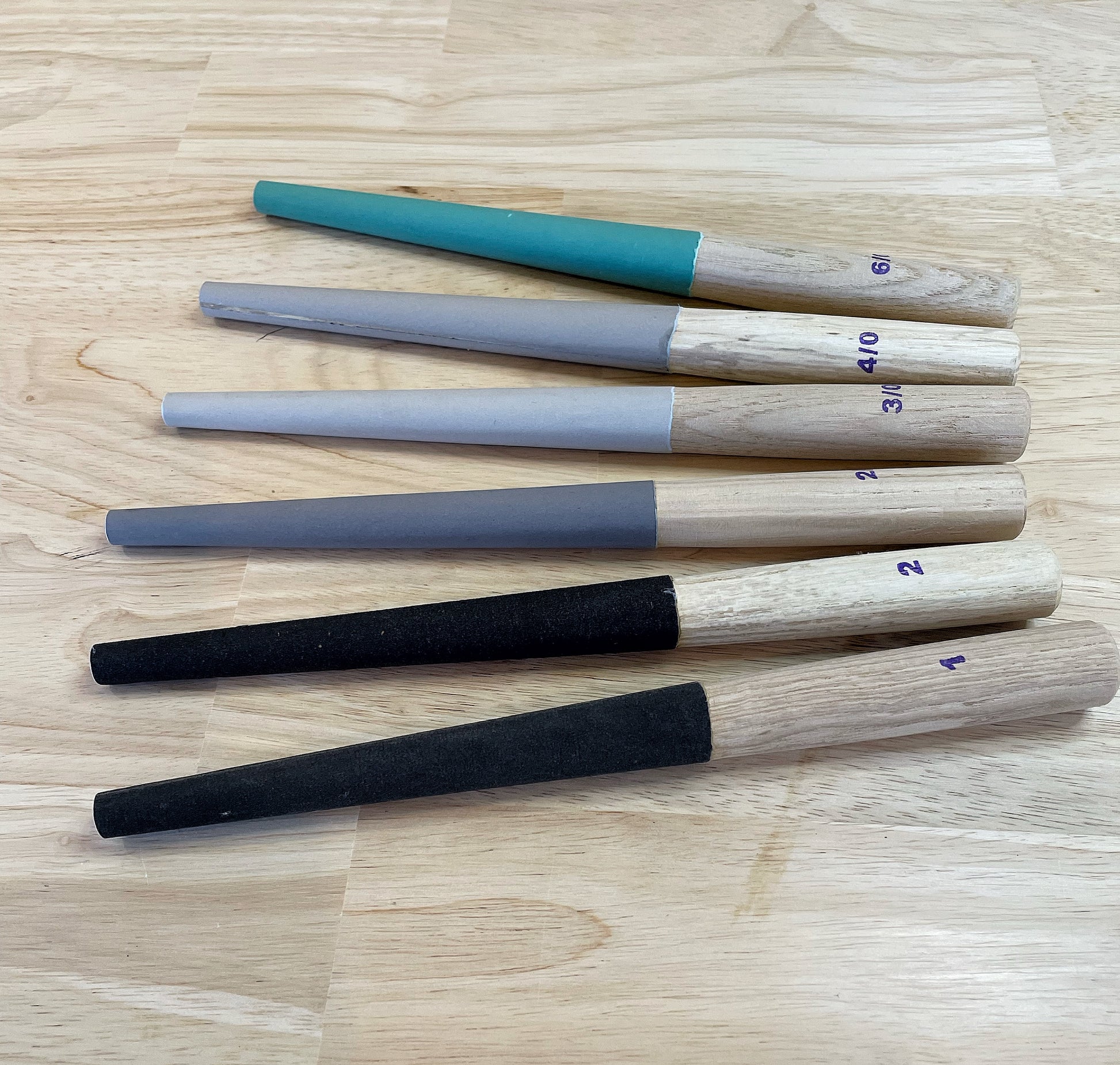 These wooden sanding sticks are perfect for cleaning up the insides of rings in metal or wax. They come in a set of 6 grades, from coarse (240 grit) up to very fine (2000 grit).