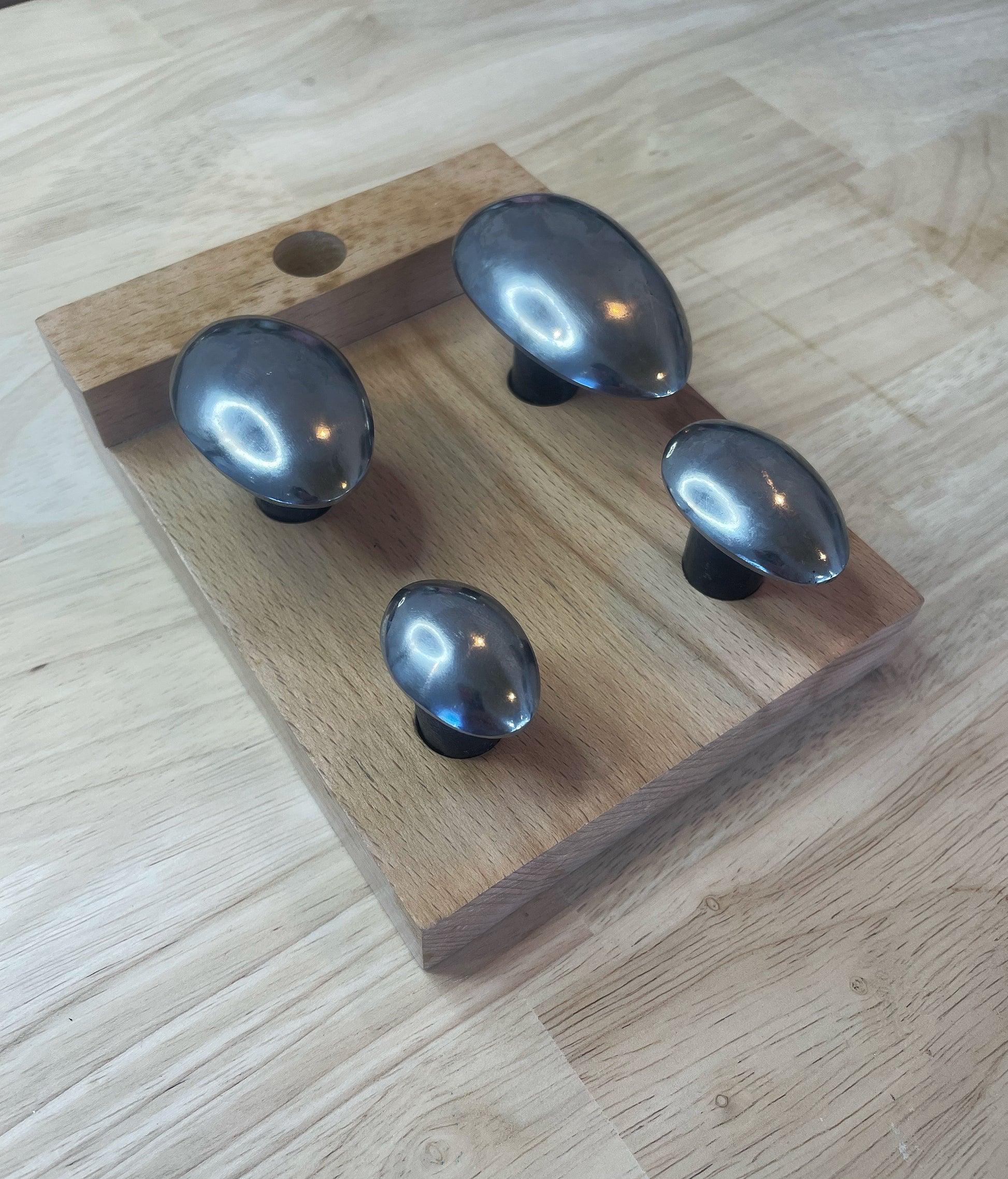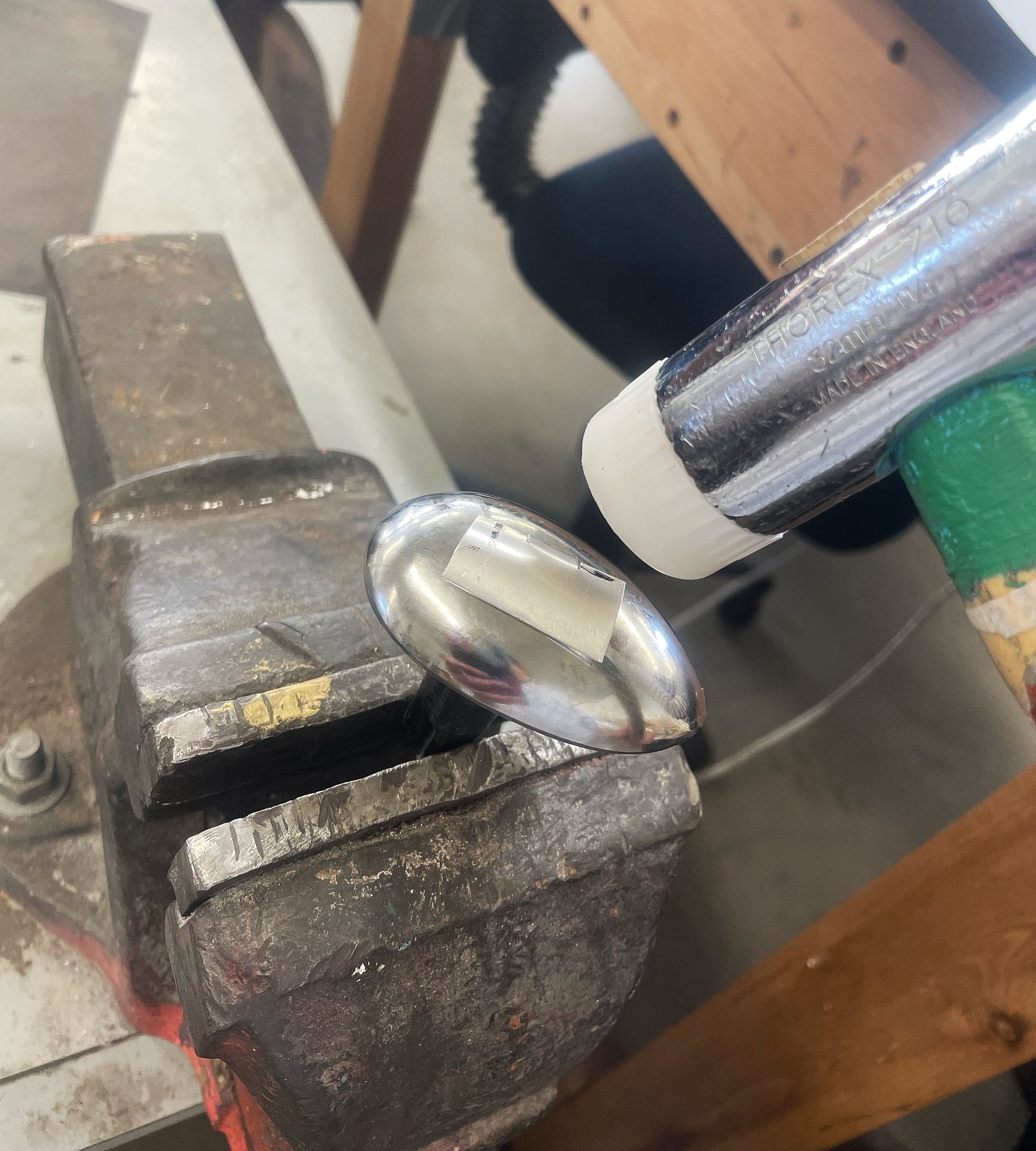 This cast steel stakes are ideal for shaping metal into gentle curves and dishes. They are much shallower than your traditional doming punches, plus have the advantage of being a teardrop shape.