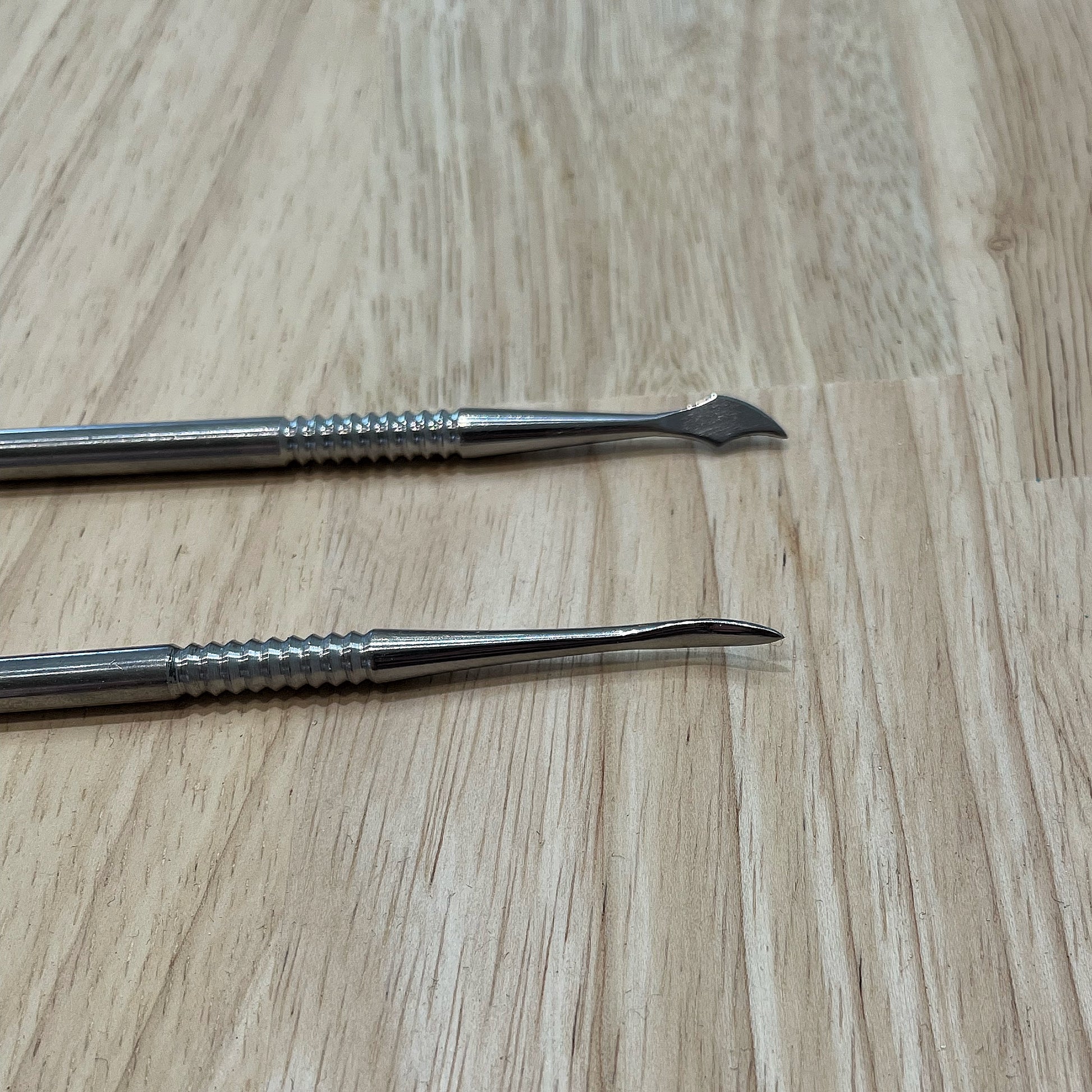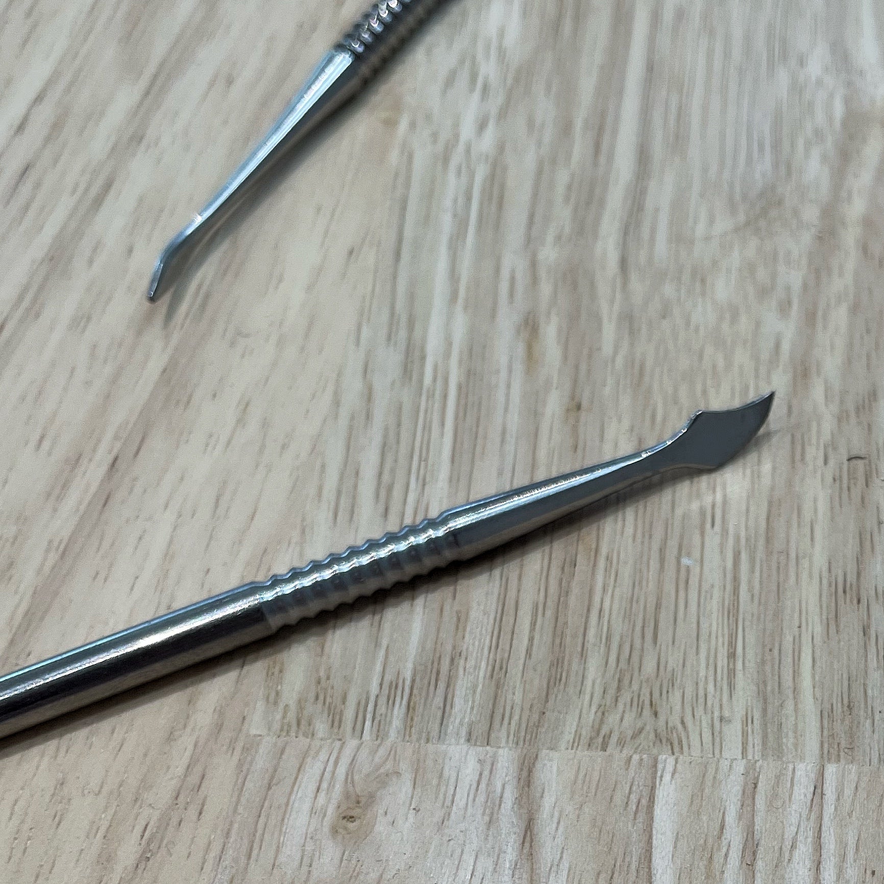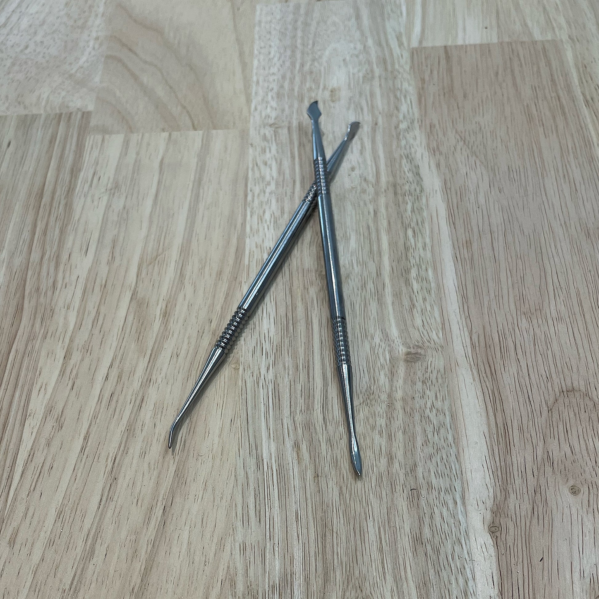 This stainless steel tool is perfect for all your wax carving projects. It features two differently shaped ends, one slender and pointed, the other a sharp blade type scraper.