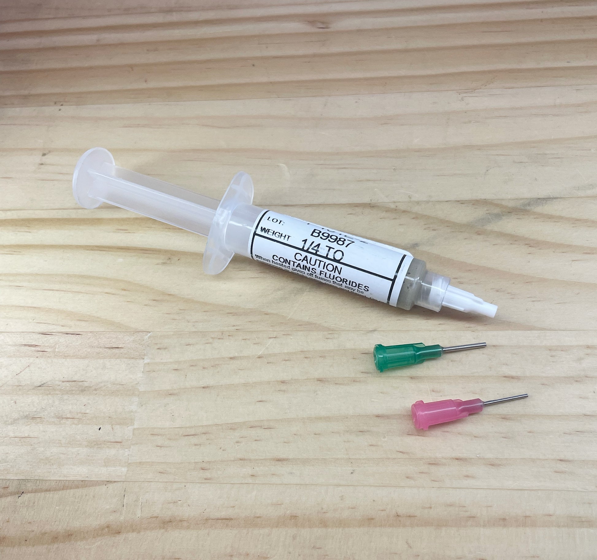 Each syringe comes with 2 different sized nozzles for direct application and contains 7.7 grams of solder paste.