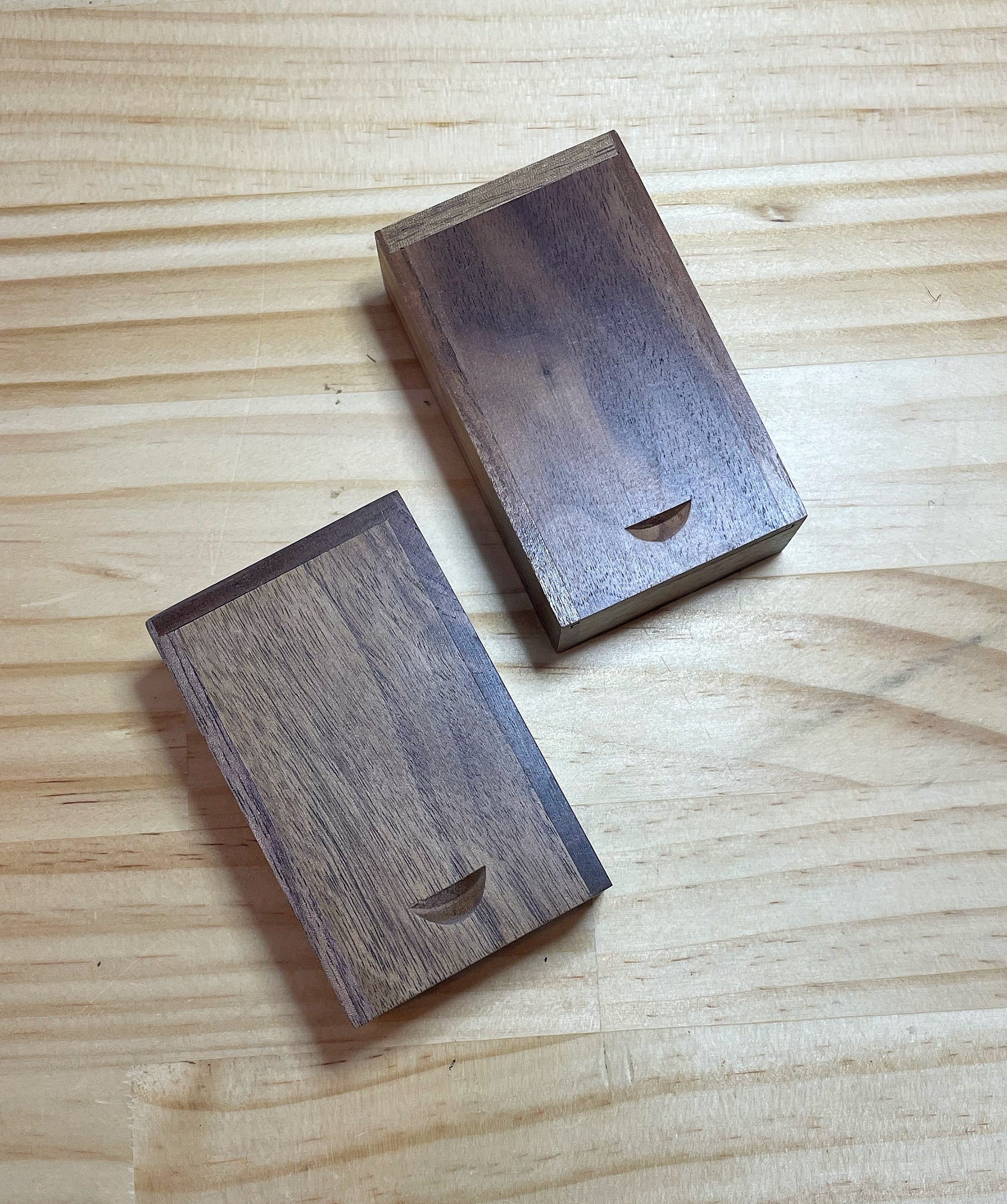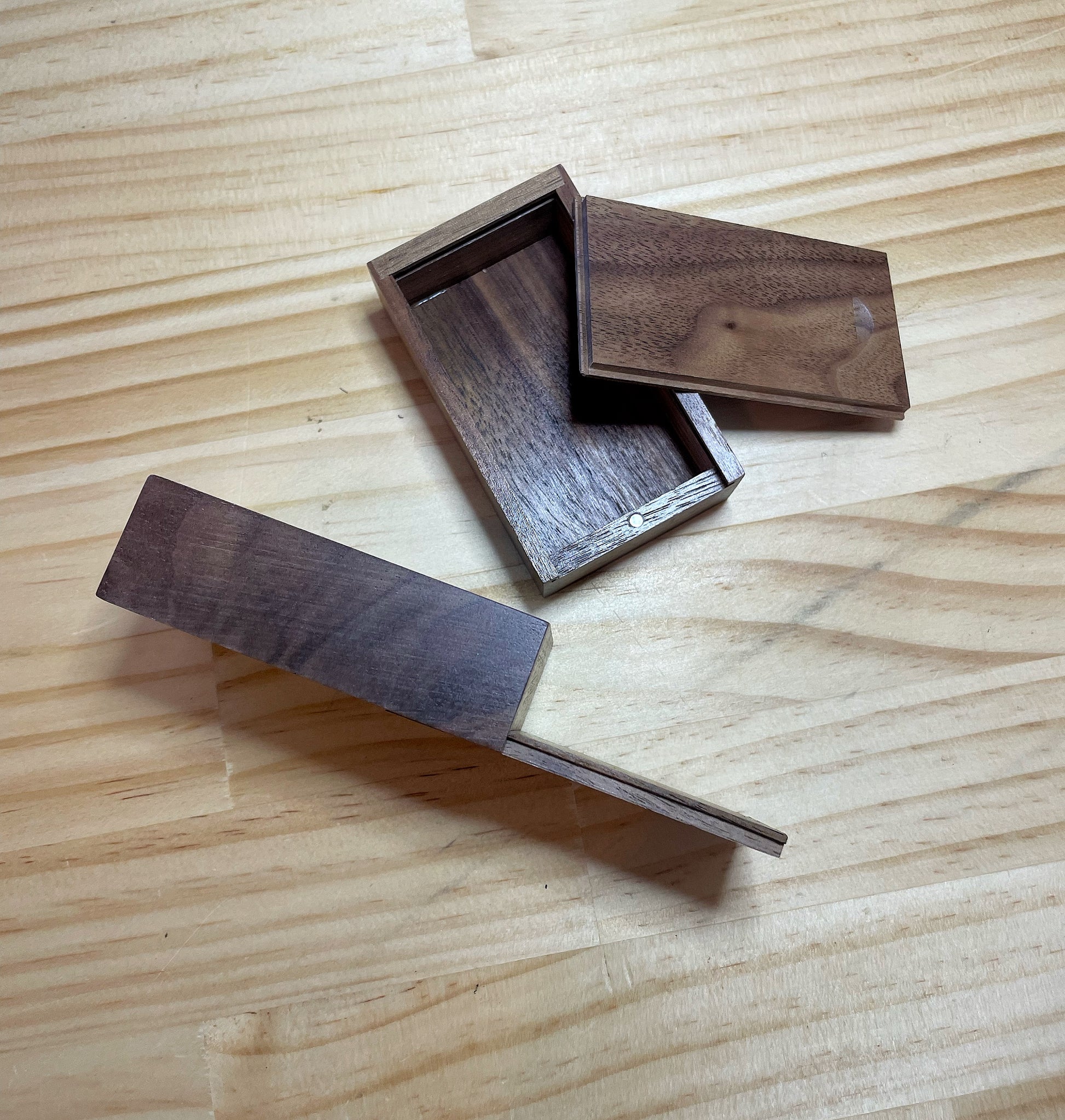 Beautiful, solid wood earring or necklace boxes with sliding lid and a magnetic closure.