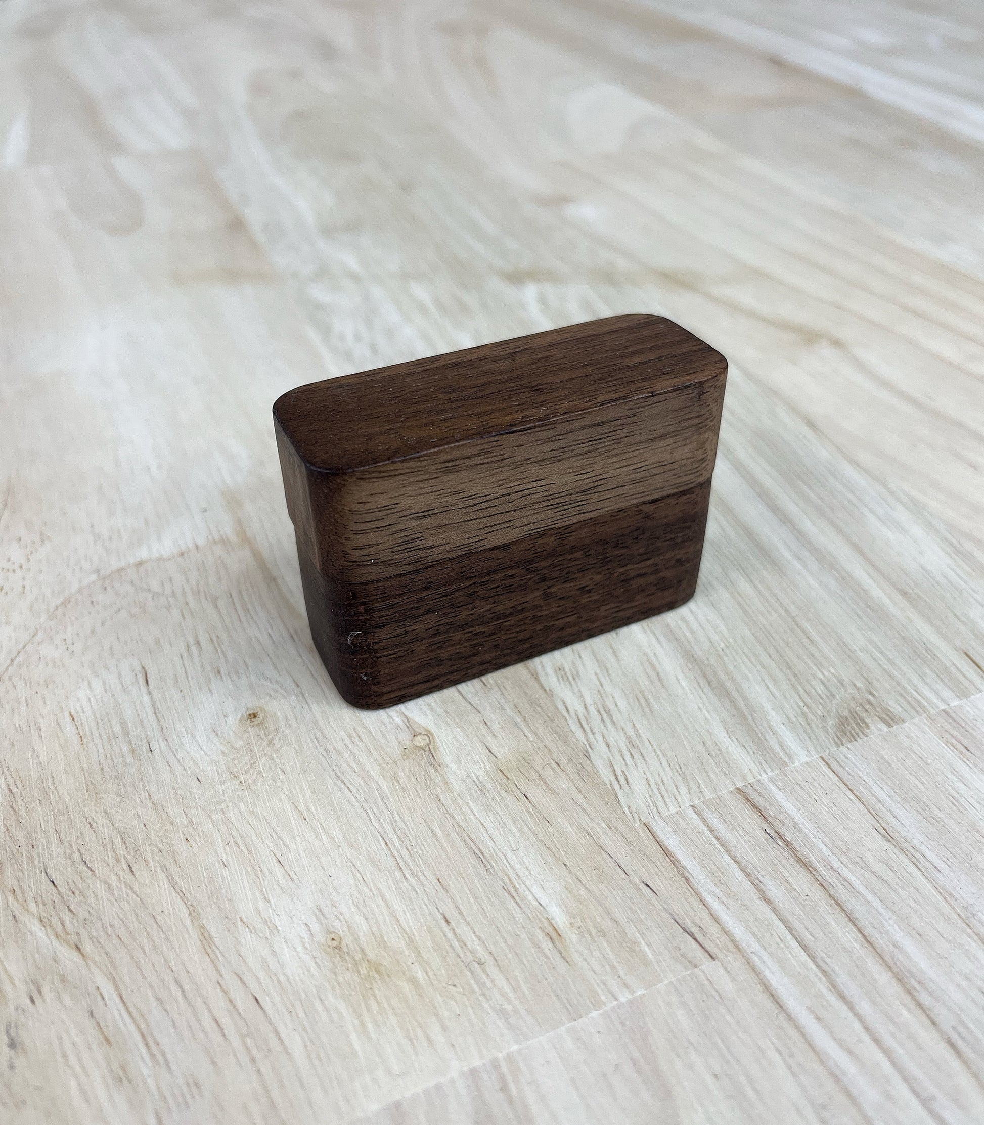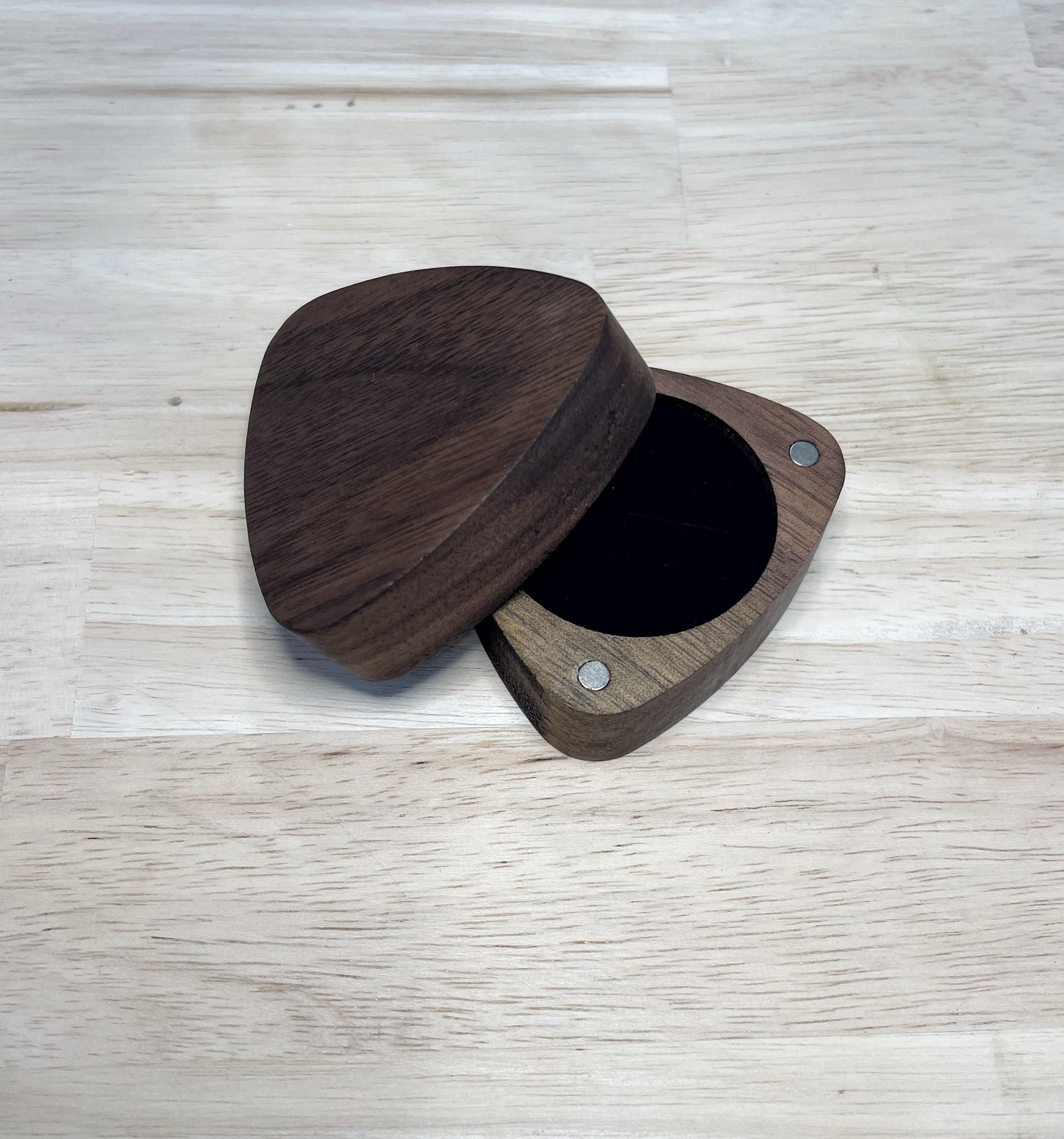 Triangular Ring Box - this stylish box has a gently curved triangle shape and 3 magnets to close, and a soft velvet interior. It measures 50mm in diameter and 30mm high.